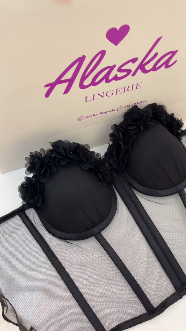Descubre la versatilidad de ALASKA nuestro corset , Con copas con realce que ofrecen soporte perfecto y una estructura que moldea la cintura con elegancia.